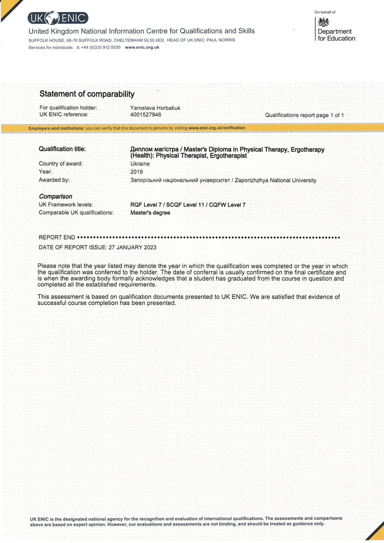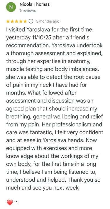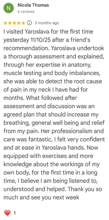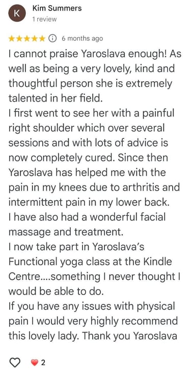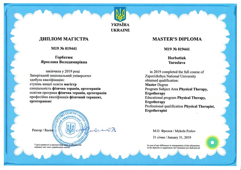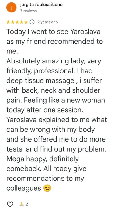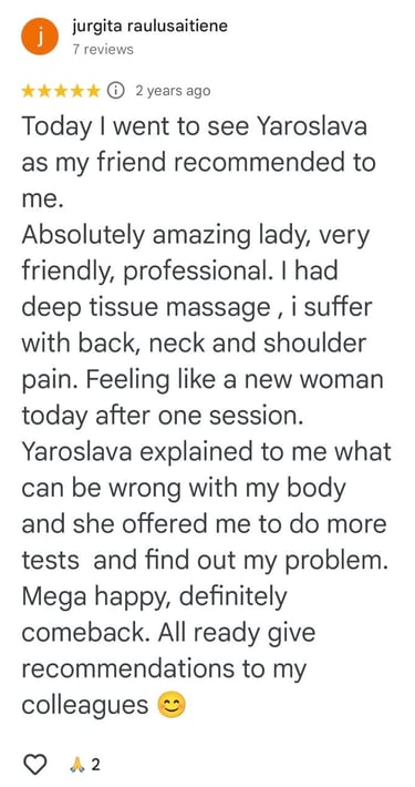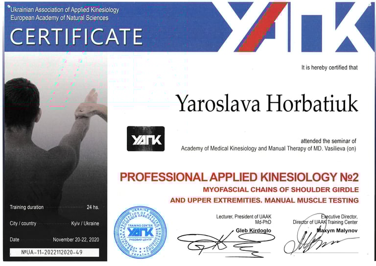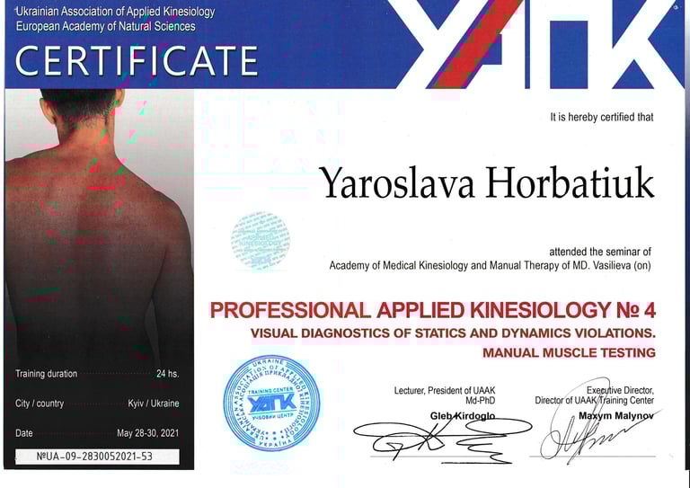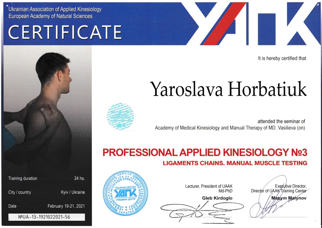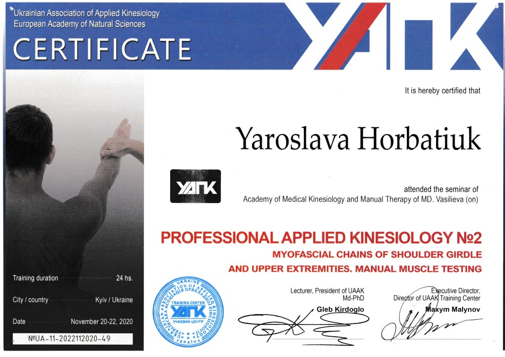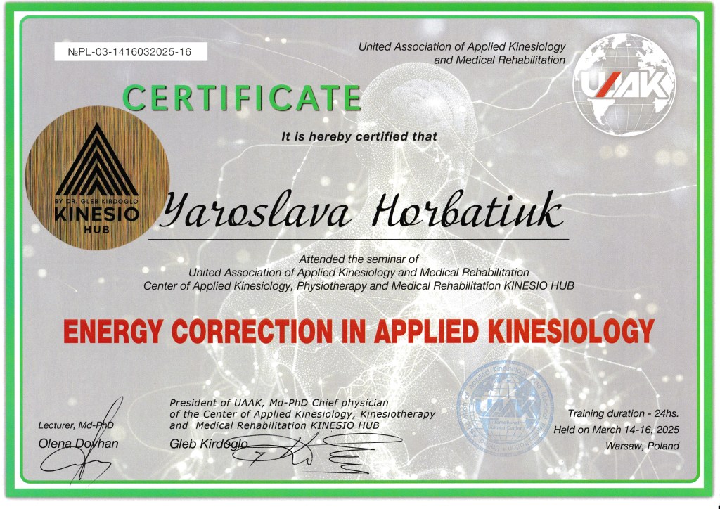 I am a qualified kinesiologist, rehabilitation specialist, massage therapist, and physical therapist with over 15 years experience from Ukraine. I hold a master’s degree and continue to enhance my skills through ongoing professional development I work with both adults and children, offering personalized therapeutic and wellness services tailored to individual needs…